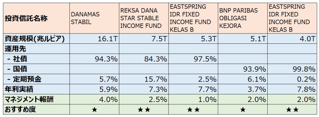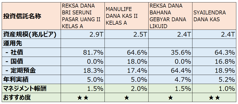 ・流動性確保の観点から資産規模が2兆ルピア(約200億円)以上のもの